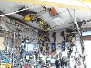 Dexter Brahn has been a chainsaw dealer and repairman for nearly 30 years, and he says sometimes guys bring in models that are way “over the hill” and they often don’t want them back, he says. “So, several years ago, I started hanging them from the ceiling or cutting a hole in a firewood wall and left them hanging there. I called it my saw patina wall.”