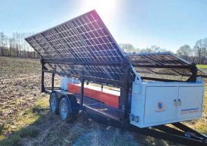 Randy Johnson provides power to go with solar panels loaded on trailers. Johnson and his partners got into the business when they bought 400 12kW trailers with 2,500 watts of solar panel capacity. Demand proved strong enough that the company is introducing its own design later this year.