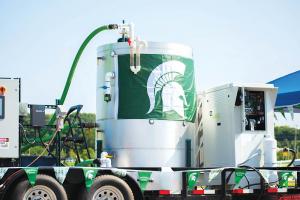 MSU has already demonstrated the benefits of anaerobic digestion, with its south campus 450,000-gal. digester in operation since 2013. In 2022, it produced 2.8 million kWh of electricity to power itself and 10 buildings on the south campus, using 12,500 tons of manure from the MSU dairy farm and 15,000 tons of food waste from MSU’s cafeterias and the greater Lansing area.