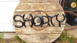 Hancock also makes individual letters with horseshoes. “Everyone has their horse’s name on the wall of the stall at horse shows,” he explains. “With these letters, they can spell their horse’s name with horseshoes.” The letters cost $12 each. “If your horse is named Buck, then you’re in luck. But if his name is George Worthington Witherspoon Saltenstall Hemersnip III, I’m sorry, but I don’t think it’d be worth shipping something that heavy,” he laughs.