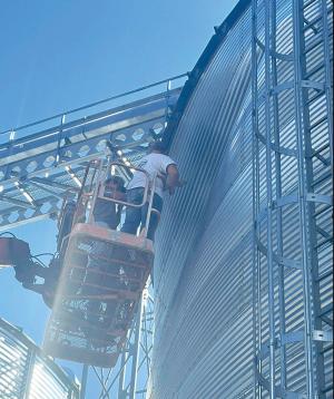 Edinger has bins running north and south, and he notes the wind in the alley can be 10 to 15 mph greater. Recent high winds created a 15 to 20-ft. wide dent. It was the second time this particular bin had been dented by wind over the past 3 years.