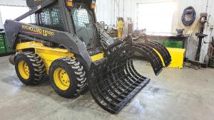“I can ram trees with them, and the concaves don’t bend,” Madsen laughs. “I cut a bunch of maples off at about 6 ft. high and then knocked them over with the grapple and picked them up by the roots. They were super heavy, but it’ll lift about as much as the skid steer can handle.”