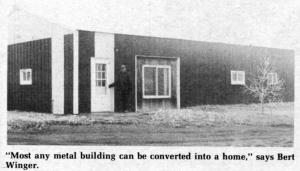 Winger spent $6,000 for the building itself in the summer of 1976, and another $6,000 to finish the living quarters, and install the well and septic tank. The same building today, he feels, would probably cost from $15,000 to $18,000.
