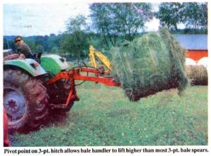The arms can be adjusted in length to accommodate 4, 5, or 6-ft. bales. A hydraulic valve is used to rotate the arms. Sells for $1,399.