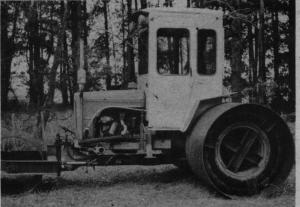 Hydraulic cylinders on each side of the hinged front ring do the steering. The Camerons "beefed up" the tractor's frame with a heavy support beam which runs full length from front to rear.
