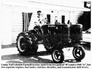 "I got the idea as a kid in the late 40's or 50's when I saw a double F-20 Farmall tractor in a magazine. I never forgot it," says Vail.