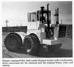 Klepper says all models of used Wagner, Steiger or Versatile tractors are candidates for conversion to all hydrostatic drive. Cost for the conversion is about $8,000 to replace only the clutch and transmission, and up to $20,000 to $35,000 if the conversion includes a new engine, cab, extension of the wheel base, hydrostatic drive and other modifications.