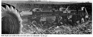 Both depth and width are adjustable "on the go". On hillsides, for example, the operator can set depth lower, and furrow width narrower, for more runoff prevention. In low land, he can set the depth shallower and the furrow wider to trap less moisture. "The unplowed portions of the ground will hold your soil in place while the deep trenches of shattered subsoil channel moisture to root level. We think its erosion control features alone will make this plow a valuable investment,' says Meiners.