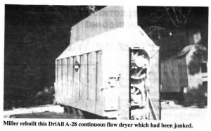 "A lot of millwrights will work on dryers, but not many will rebuild them from scratch," says Miller, whose only advertising is by word of mouth. "Most farmers junk out old dryers that aren't in working condition. The dryers we rebuild have of-ten been destroyed by fire or by acid from old, rotted grain. I check the dryers over for decay and rust, then sand blast and replace any wornout parts such as chains and controls. Then I prime and repaint them. The cost to rebuild a particular dryer depends on its condition and age, but in general a 1,000 to 1,400 bu. per hour dryer will cost about $15,000 to rebuild. A new dryer of comparable capacity sells for up to $70,000.