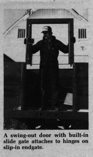Company spokesman Dan Shirek notes that the new endgate is great for older trucks that don't have swing doors. It replaces the existing gate, using the same slots. Its swing-out door allows for fast unloading at grain elevators and allows you to haul long cargo, such as boards or pipes, without removing the endgate. And, you still have the slide gate for conventional unloading into augers.