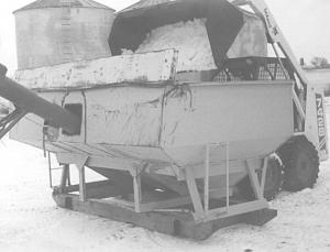 "It really works slick and is a simple and inexpensive way to unload grain out of flat storage," says Mabeus. "Once I dump grain into the box it never gets touched again. Less handling results in better grain quality and speeds up loading time into the truck. It's also safer to use because the intake end of auger is inside the box.