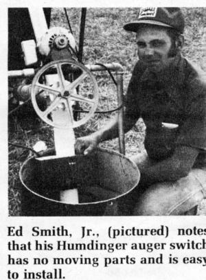 Activated by a built-in light bulb and electric eye sensor, it operates automatically whether in broad daylight or total darkness. "Unlike conventional paddle-operated pressure switches, it has no moving parts and isn't affected in the least by moisture content of the feed or grain. What's more, it's easy to install. Just mount it on a 3 in. dia. clear plastic tube and plug it into any 110 volt outlet. In fact, it can be wired to the existing wiring of the pressure type switch it is replacing," explains Ed Smith, Jr., inventor and manufacturer of the Humdinger switch.