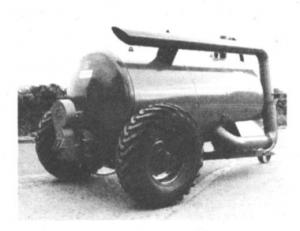 Equipped with full hydraulic operation from the tractor cab, the new "Slurry Probe" does away with the necessity for the tractor driver to leave his cab and wrestle with messy pipes and couplings. He simply positions the tanker alongside the slurry pit then, using the hydraulic controls, swings out and down the 12 ft. long, 9 in. dia. filling probe, sucks the tank full, returns the filling probe, closes the probe shut-off valve, swings the probe back into travel position, and heads for the field.
