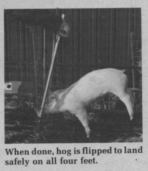 Holding hogs upside down on their backs is safer, easier and cleaner for the operator. Also, it creates less strain on the hog since it can't fight or squeal, the manufacturer points out.