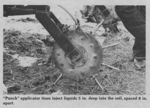 Point injection of liquid fertilizers and anhydrous ammonia is designed to save energy, soil and fertilizer. It lets you make multiple applications of fertilizer throughout the growing season with less damage to roots and requires less fuel and horsepower than knife-type applicators, according to the researchers. Also, for conservation tillage, point injection incorporates less trash and crop residue into the ground.