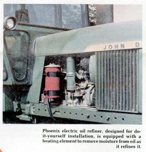 "The product is new to most farmers but well-known to hundreds of truckers, contractors and other owners of industrial engines who have used it successfully in more than 60,000 different applications," says Glenn Priest, president of Re-Fillco Corp., a division of Thermodyne Corp., Norman, Okl., manufacturer of the Phoenix Electric Oil Refiner. "Some of the first engines to use our refiner have been running 7 years without an oil change," Priest told FARM SHOW.