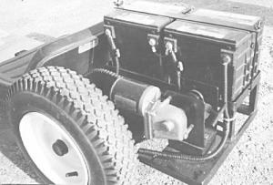 Jones' cart is powered by two 12-volt Delco batteries. It'll run up to 72 hours be-fore requiring a recharge. Recharging takes three of four hours with a standard 10-amp battery charger.