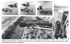 The new front-mount "swing tongue" is available on all Lundell 12 and 14 ft. rotary mowers built since 1967.