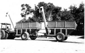 "I originally had one 400 bu. cart and needed more capacity. However, I didn't want to spend the money for a new 800 bu. cart. I have about $5,200 invested in the two carts and spent about $1,200 more to add the pto shaft. A single cart of comparable capacity would have cost at least $10,000 to $12,000. The two carts are equipped with 12-in. dia. augers and unload at about the same speed as a single can equipped with a 16-in. dia. auger. However, running two carts together is better than a large single cart because I can use them separately in muddy fields where a large cart would sink in."