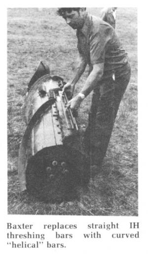 In corn, Baxter removes the curved bars and installs his version of International's straight bars, which he says also work better than the originals. The factory bars have a slight incline to the rear while Baxter's are perpendicular to the rotor, which he says makes for less friction against the concave, reducing the power requirements while doing as good a job or better.