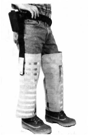 Detachable Hot Chaps leggings use a mild electric shock, similar to a Hot Shot live-stock prod. Hogs respond quickly, leaving you "hands free" to work without the hassle of chewing and biting hogs.