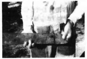 Good way to make a Corner Post Anchor FENCING Techniques 14-5-34 Here's a good way to make a corner post anchor. Cut the points off a pair of throw-away plow shares about 1/8 or 1/4 in. from the first bolt hole with a metal saw or torch. Attach the shares to either side of a wooden post, about 3 in. from the bottom, with two large staples driven through holes in the shares, so that the shares hang freely out to the sides. When you drop the post down into the hole, the shares will come in against the sides of the post. But once down in the hole, the shares will hinge outward and pinch the post down so it can't be pulled out. I've had posts anchored this way for the past 12 years and they haven't risen an inch. I originally got the idea from an old wooden stave silo anchor. (Eldor Wambsganss, Rt. 1, Box 4, Elmdale, Kan. 66850)