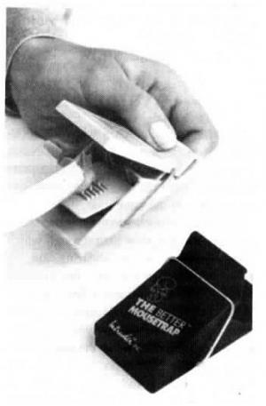 The trap consists of two plastic jaws held together by a wrap-around steel spring. It was designed by engineer Tom Martin of Maple Grove, Minn., to be easier to use. For example, there's no way you can catch your fingers when setting the trap because you just pinch the jaws in back and hold onto the trap while you put the bait on the trigger. When the mouse takes the bait, the jaws snap shut, suffocating the rodent without the blood or mess wire traps sometimes result in. And to empty the trap, you don't have to touch the mouse. Just pinch the back of the jaws to open the trap and the now-dead mouse will fall out.