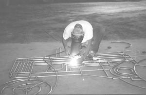 Pieces of conduit are formed on pipe benders and welded together. Ornaments are lit by miniature Christmas lights spaced 1 1/2-in. apart and taped with clear electrical tape to the pipe. Angels, for example, are illuminated with 350 to 400 lights, while the 3-piece Nativity set is lit up by 850 lights.
