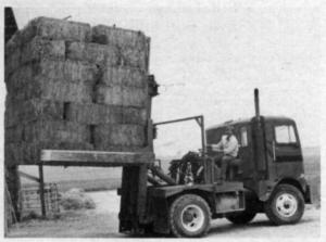 Aceti started with a Freightliner truck which he no longer needed to haul hay. He installed 2,000 psi hydraulics and removed the 5th wheel to install a rear command center, setting up steering, brake, clutch and all other controls. To handle hay, a large mast fitted with squeeze arms was mounted on the back. All controls and add-on equipment can be removed in 2 hrs. to convert back to a straight over-the-road truck.