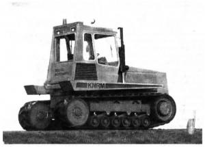According to a recent report in Britain's FARMERS WEEKLY, the first prototype is powered by a 250 hp. 6-cyl. Volvo engine. When driven in a straight line, the crawler exerts the same low ground pressure as other rubber tracks. But when the machine turns, hydraulic cylinders press down on the two center bogie wheels on each side, causing that area to bulge down-ward, giving the tracks a pivot point to turn on.