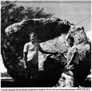 The rock has been estimated to weigh 110 tons. "We've never heard of anyone digging up a bigger rock to use as a lawn ornament," says Kathy.