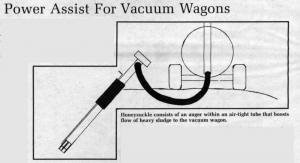Vacuum from the tank pulls heavy sludge to the input end where an auger, operating in an air-tight tube, gives it a boost to move it into the wagon. "This is not an ordinary grain auger. It's air tight and special built to work in conjunction with a vacuum to move thick, heavy sludge," explains Ruyle. "The Honeysuckle draws solids off the bottom, allowing you to get a uniform mix of liquid and sludge in each load without pumps, chemicals or agitation.