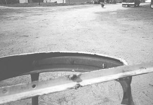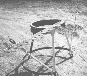 "I used an 8-ft. length of 1 in. angle iron. I welded a pair of 3/8-in. hex nuts to it every 24 in. to hold the sickle in place. The angle iron welds across the top of an old wool sack holder that's about 30 in. high. Angled braces support each end of the sickle holder.
