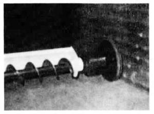"It's 5 in. in dia. and 4 1/2 in. long and can be adapted to fit any existing sweep auger. It was a challenge to design because it consists of 4 sprockets and two pieces of double chain. It's a compact, self-contained unit," says Day, who notes that the wheel walks the auger slowly around the bin rather than spinning in its tracks which kicks up dust and wears out the wheel.
