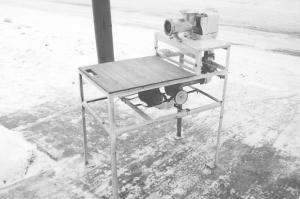 The grinder bolts to a sheet of 3/4-in. thick plywood covered by plexiglass.