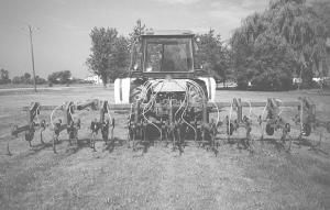 The hoses are equipped with restrictor nozzles that apply the nitrogen in a narrow stream that penetrates the ground. Nitrogen is carried in saddle tanks on the tractor and is pumped to the cultivator by a conventional hydraulic spray pump.