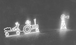 The designs are generally 3 to 6 ft. high. All of them are shaped from 3/8-in. coated rebar that's wired with virtually maintenance free Duralight solid colored ropes of lights. Some of the scenes are animated.