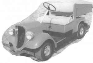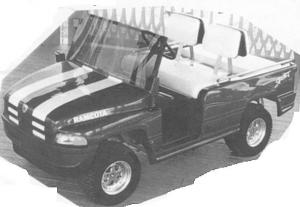 He also sells do-it-yourself kits that let you convert a used golf car chassis into a "funmobile". Two kits are offered - a Dodge "Ramcota" that looks like a pickup and a "Kool Kart" that looks like a 1934 Ford car.