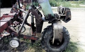 "In the future I plan to install an electric valve in the cab and microswitches behind the front wheel so that the tractor will automatically guide itself and cultivate down the row."