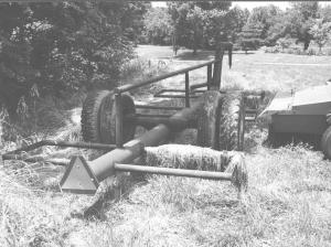 "The dual wheels on the semi tractor axle are nice because if one tire goes flat the other tire can still carry the load," says Hatten, who notes that he'd be willing to sell the bale hauler for about $2,000.