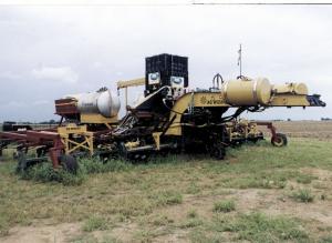 "As far as I know converting anhydrous to liquid nitrogen in the field is the only way to apply huge amounts of nitrogen without it being in an anhydrous form," says Scheetz. "I borrowed the idea from sugar cane growers in Louisiana. My goal is to apply 285 units of nitrogen per acre. If that nitrogen was all applied as anhydrous ammonia I'd have to apply 325 lbs. of anhydrous per acre, which would harm both the soil and the seed. Also, much of it would escape from the ground. The advantage of liquid nitrogen is that it doesn't produce vapors like anhydrous so it can be placed closer to the seed without burning it. My conversion process converts the anhydrous to 62 percent liquid nitrogen which, unlike 32 percent liquid fertilizer, can't be stored in an open container so I have to make it in the field. Another advantage of this conversion process is that I have to take only half as much water to the field as I would with 32 percent liquid nitrogen."