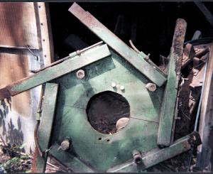 The steel mud spades are welded to a hexagon-shaped, 1/2-in. thick steel wheel that bolts to the tractor's wheel rim and hub. There are six mud spades. Each consists of a length of channel iron with a telescoping length of rectangular tubing inside it that digs into the ground between the dual wheels. Each piece of channel iron has a series of holes spaced 2 in. apart, and each piece of tubing has a matching set of holes. The rectangular tubing is held in place by a set screw attached to a steel rod. The rod is inserted through a loop welded to the top of the channel iron. To adjust the depth of the tubing Willette loosens the set screw and pulls it out, then slides the rectangular tubing in or out.
