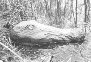 If you're ever a guest at Roger Gray's farm and you wander down to the pond you may be in for a scare. But don't worry. What appears to be an alligator swimming along the surface is really just a "watch dog" that keeps ducks and geese from becoming permanent residents.