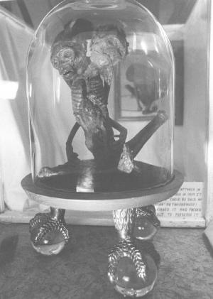 Lally's collection now includes the two-headed rattlesnake, six two-headed turtles, and a mounted collection of two-headed animals he purchased from other people. These stuffed animals are authentic (not man made) and include a two-headed monkey that died in Columbia in 1937, a two-headed calf, a four-eyed, four-eared, two-snouted pig, and a stuffed one-headed, eight-legged pig.