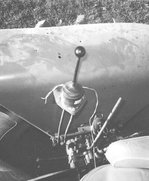 Two of the three spools are used to operate the tractor's front-end loader, while the third one is used to operate implements on back. A 3/8-in. dia. steel rod controls the third spool which runs into a connector block on back of the tractor.