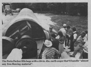 Schaefer says the machine is easy to set up. You just attach the bag ù the company recommends it's new cross-laminated 8-ft. dia. by 150-ft. long bags ù and start filling. The machine walks itself along without use of cables. It's fill a 150-ft. bag in two hours, according to Schaefer.