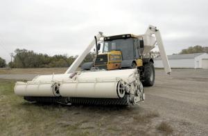 A relatively new company in Montana, Technological Solutions International (TSI), licensed the technology from Lundahl. It demonstrated a working prototype to farmers at a field day last fall, mounted on a JCB Fastrac tractor. TSI is in the process of building a factory to produce the new stripper harvester.