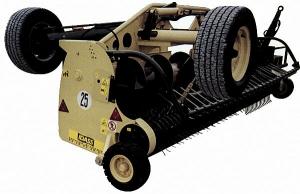 It's fitted with a set of wheels and a drawbar that drops down when needed. The Header has its own hydraulics activated by radio remote controlls. The header is ready for transport in just 40 seconds.