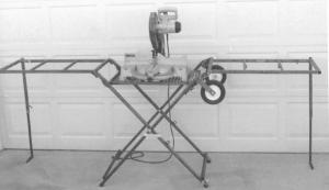 "You can use your imagination to make this bench work for you in a lot of different ways," says Birkeland. "It's ideal for holding a metal chop saw or power miter, or other table saw. Or you can just use it as a sawhorse. It can also be used to do welding work, and it has a built-in wire reel holder. By placing a length of plywood on top of the stand you can convert it into a work bench for machine work. By dropping the center table three hole settings it's just right to make most any brand or type of cut-off saw level with the outer wings."