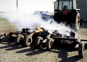 I was driving down a country road recently near Raymond, Ill., when I spotted a farmer coming in from the field with his mower ablaze. John Sale had been chopping cornstalks when he noticed the flames. He used his cell phone to call the nearby Raymond-Harvel Fire Department and then headed back to the farm.